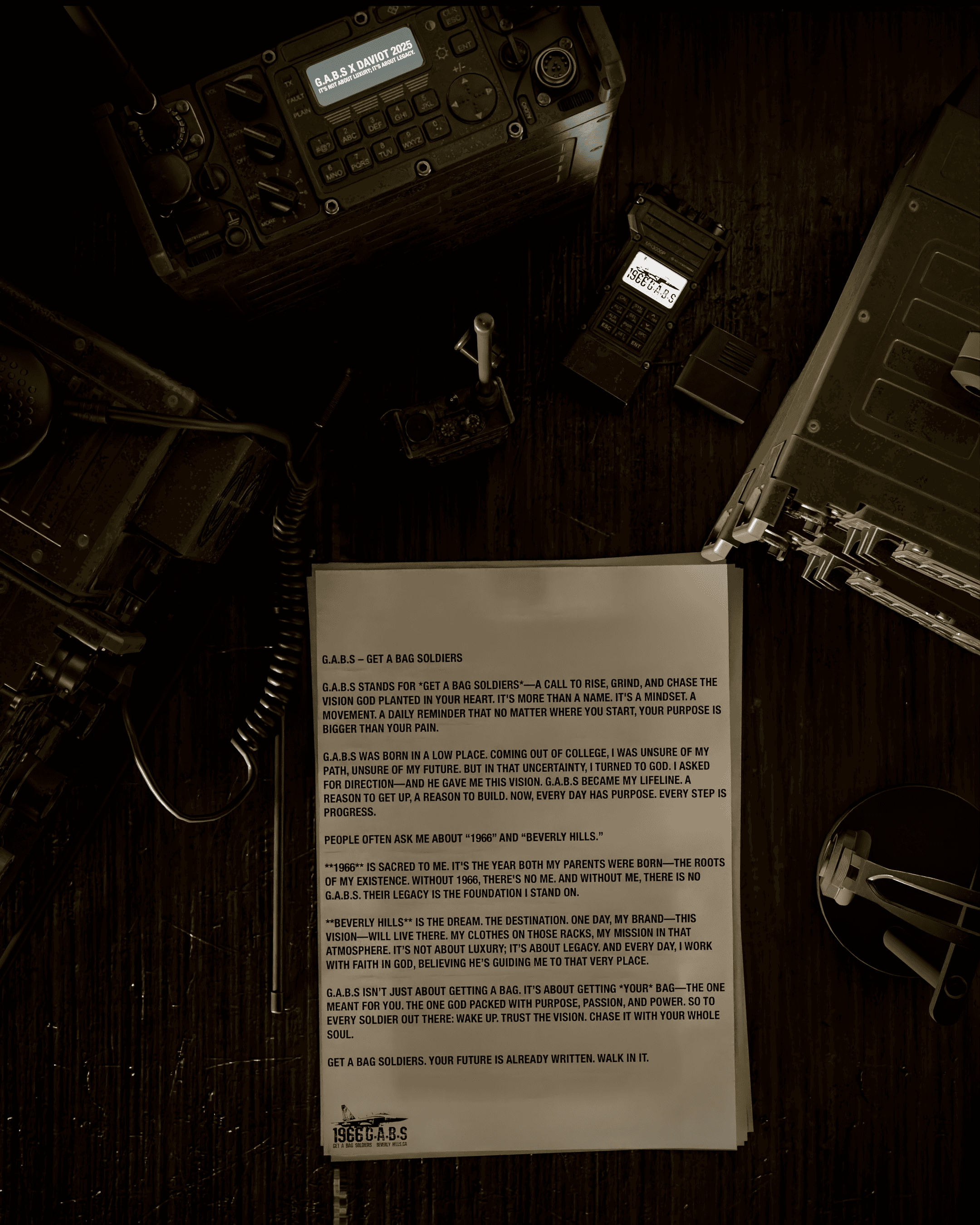 I had an amazing time working on this 3D visualization for the clothing brand Get A Bag Soldiers (G.A.B.S). The project features a custom-designed military room complete with branded helicopters, bringing a bold and immersive atmosphere to the scene. The animated helicopters truly brought the visuals to life, adding dynamic energy to the final animation. Huge thanks to G.A.B.S for giving me the creative freedom to bring this concept to reality—I’m really proud of how it turned out.